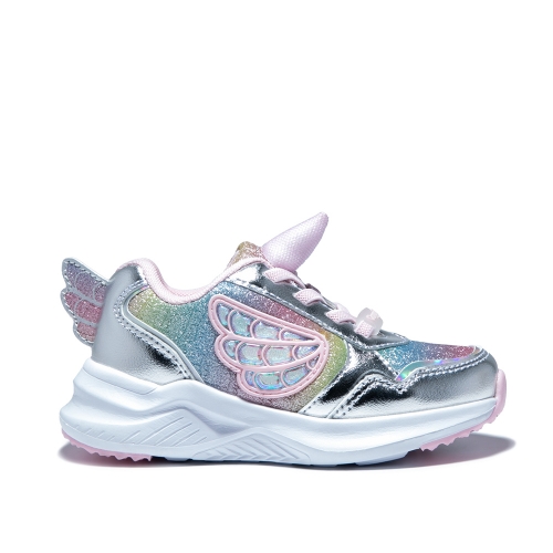 Zapatillas deportivas con luces. Tiene detalles multicolor de unicornio con purpurina en el lateral y en la parte trasera. Para complementar los looks más divertidos.