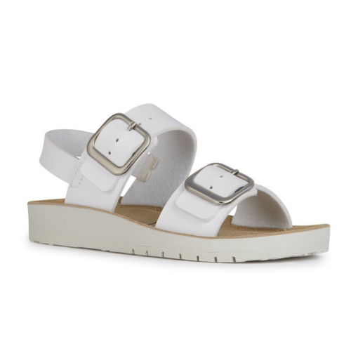 Sandalia para niña de color blanco muy combinable, cierre de doble hebilla para un mejor ajuste.