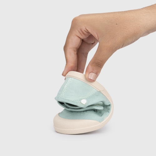 Zapatilla de lona de estilo merceditas 100% algodón, de concepto barefoot, cero drop, flexible, blandita y con plantilla extraíble.