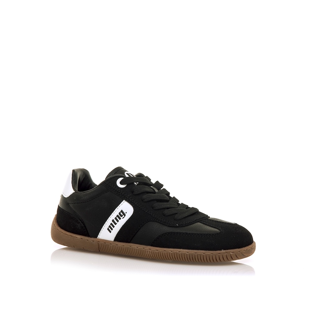 Zapatillas BAREFOOT en color blanco para mujer de la marca Mustang, modelo Free Aria Inspirada en el estilo retro indoor, esta zapatilla combina paneles de diferentes texturas en negro con detalle lateral blanco y suela de goma marrón. Diseñadas y desarrolladas especialmente en colaboración con el Dr. Juanjo López, traumatólogo deportivo, para respetar el desarrollo natural del pie. Se trata de un calzado minimalista que gracias a su puntera ancha, suela totalmente plana (cero drop) y flexibilidad, mejora la anatomía del pie y favorece una mejor posición del mismo. Se vende con una plantilla de transición para hacer el cambio de calzado convencional a minimalista de manera progresiva. Con certificado VEGANO sellado por INESCOP, el cual garantiza que no contenga fibras de origen animal.