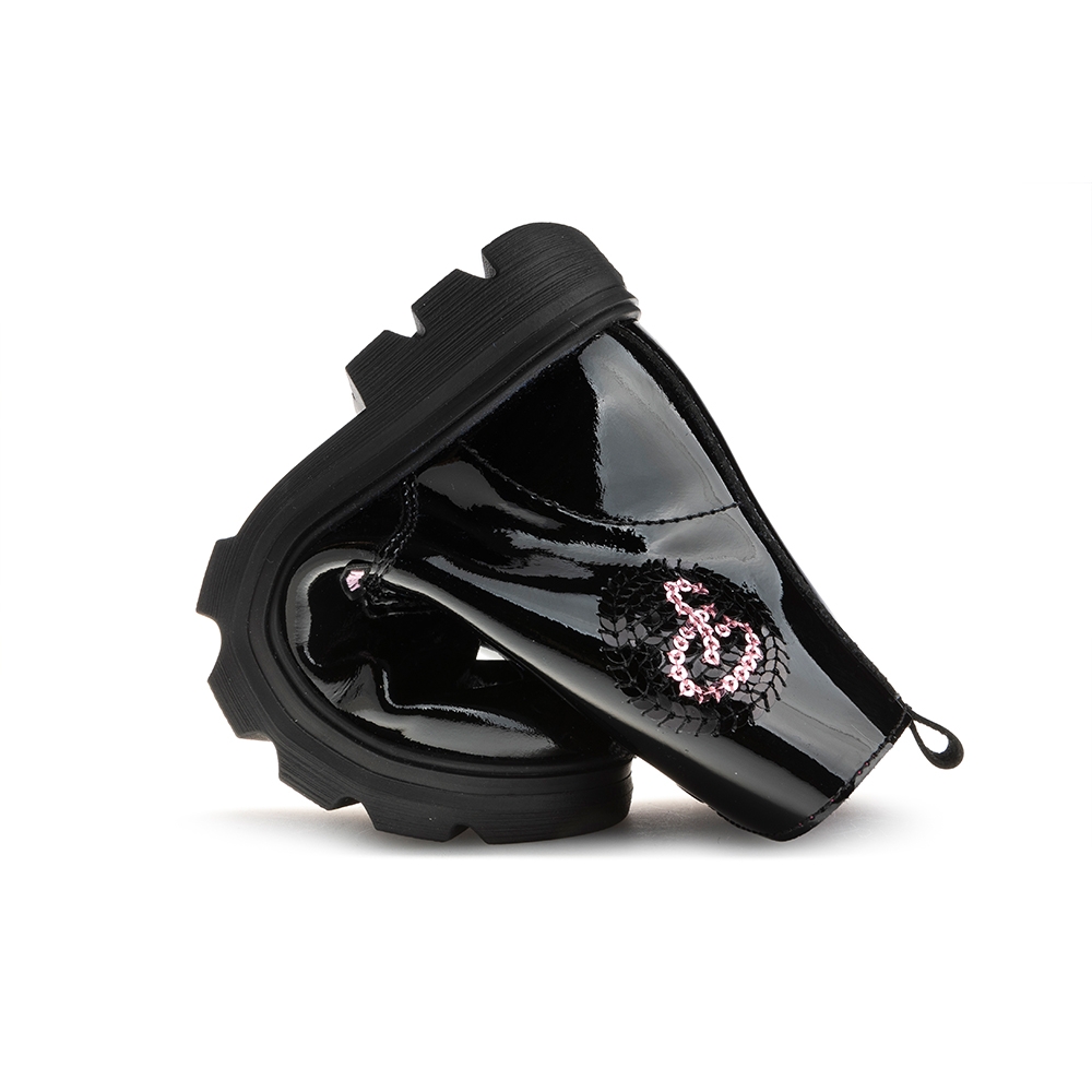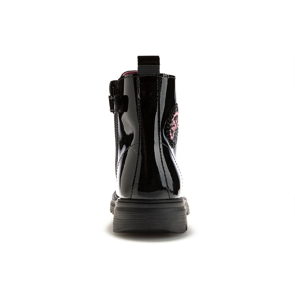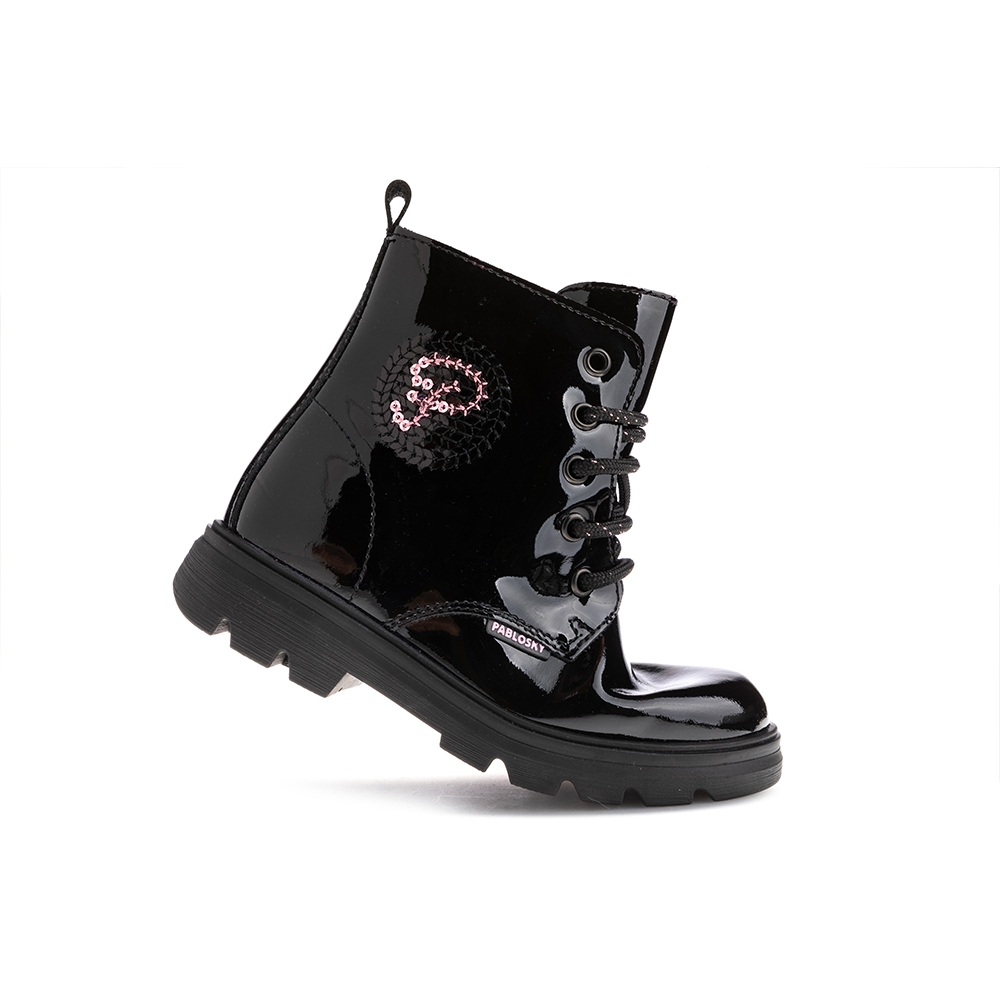 Bota estilo militar para niña en color negro con efecto charol, cierre de cremallera y cordones, super calentitas y cómodas. COMBINAN CON TODO!!