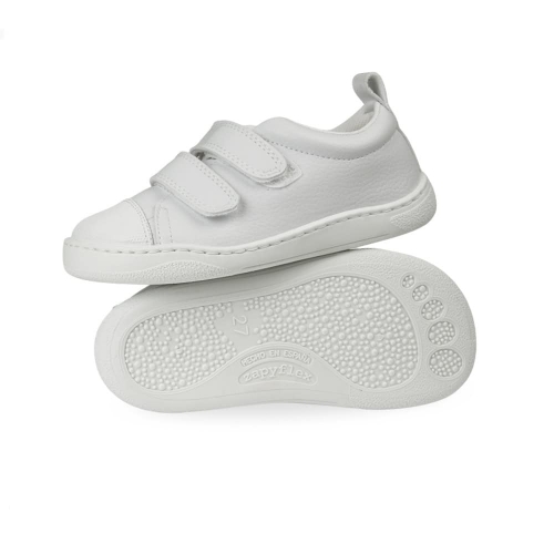 Calzado Barefoot Y RESPETUOSO Zapyflex en color blanco, está diseñado para que los más pequeños disfruten de un calzado cómodo, flexible y duradero. Su diseño limpio y minimalista lo convierte en el aliado perfecto para el cole, permitiendo que cada paso sea ligero y natural gracias a su construcción respetuosa.