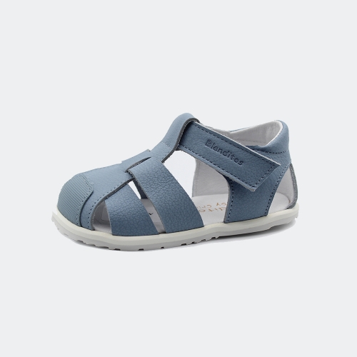 Este modelo de Blanditos by Crios en color azul viene con su nueva horma y suela, hecha con material anti-deslizante, ligero, puntera y talonera de goma y protección anti-rozaduras.