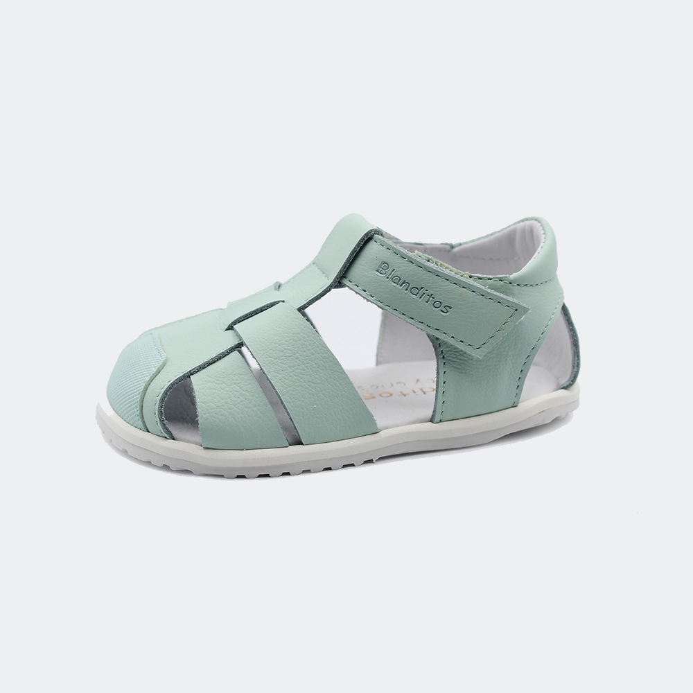 Este modelo de Blanditos by Crios en color verde viene con su nueva horma y suela, hecha con material anti-deslizante, ligero, puntera y talonera de goma y protección anti-rozaduras.