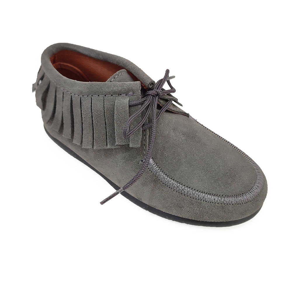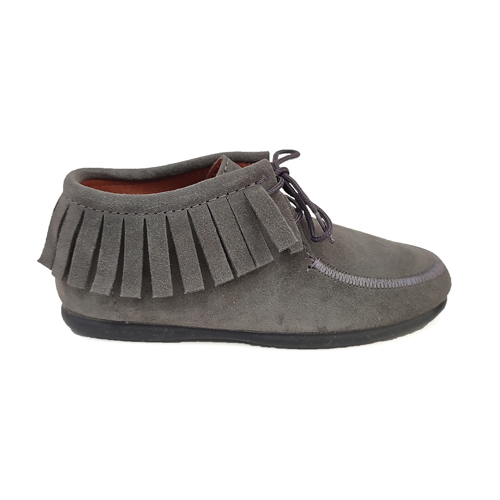 Mohicanas, con ajuste mediante cordones. Confeccionada en piel y forrada en textil, para obtener una buena transpiracion del pie. Suela de goma con aroma a chuches y plantilla interior en PIEL ecologica.