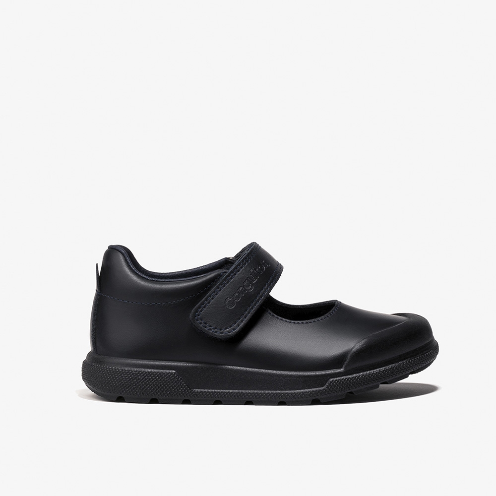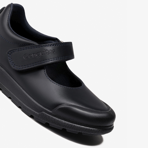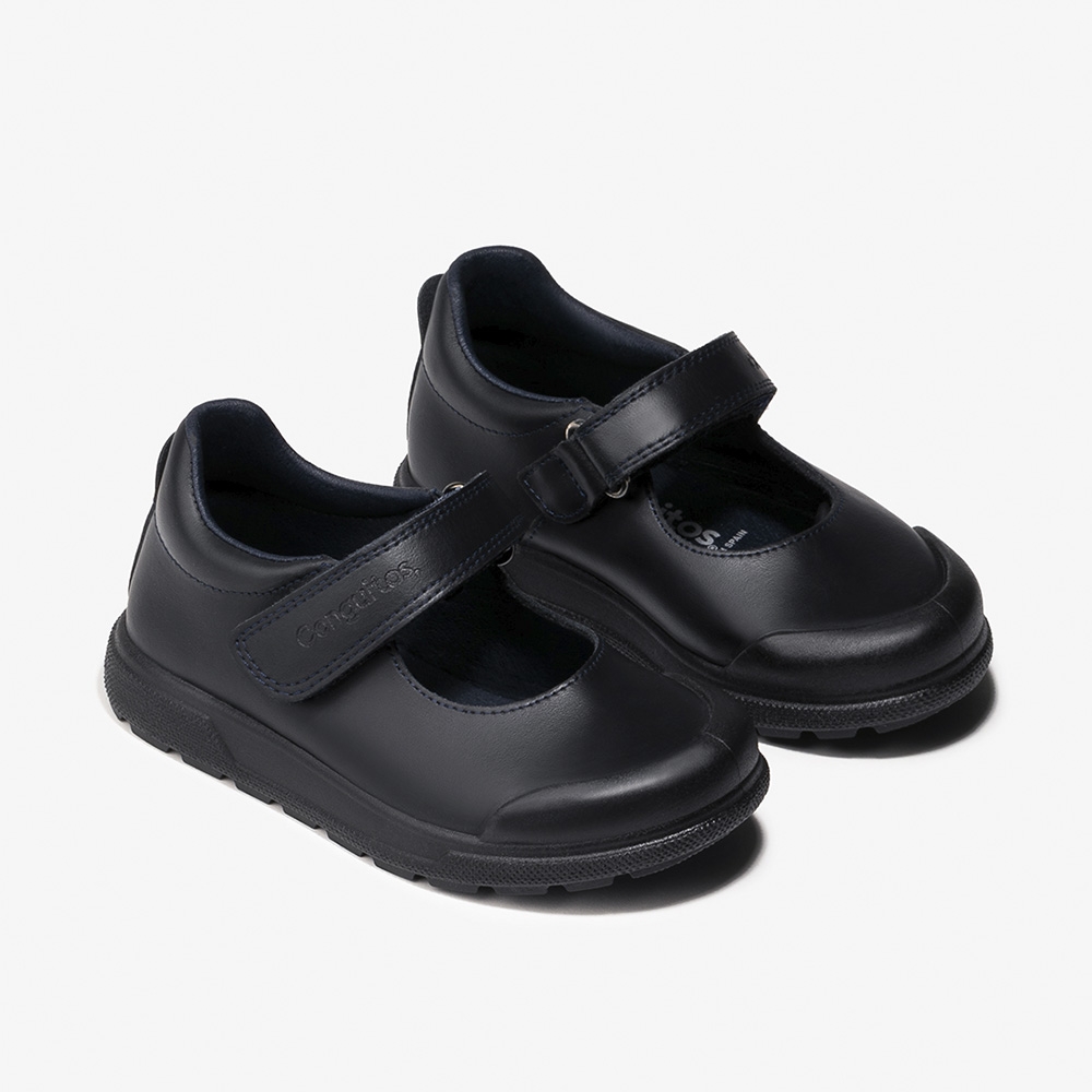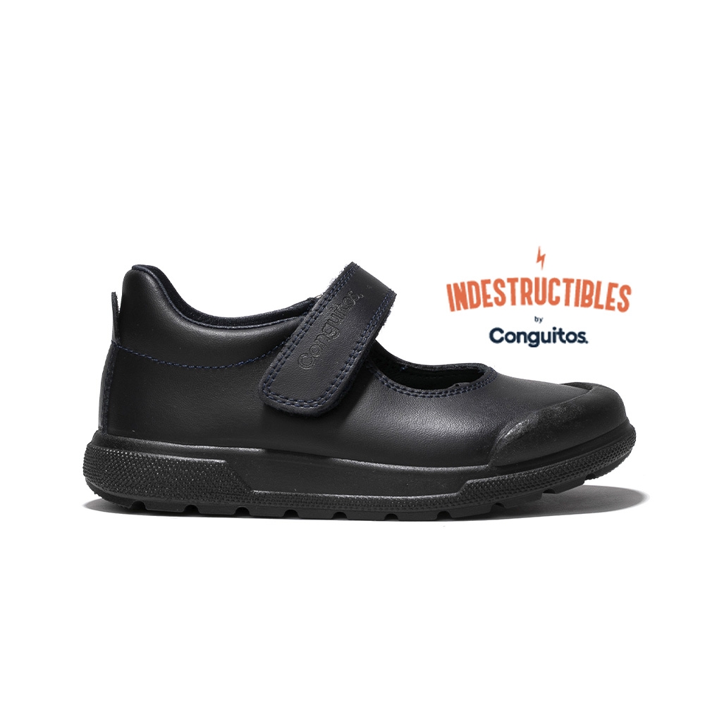 Zapatos colegiales de niña confeccionados en piel lavable azul marino y plantilla extraíble. Los indestructibles son la mejor elección por su flexibilidad, comodidad y suela ultrarresistente a prueba de carreras, saltos y muchos juegos.