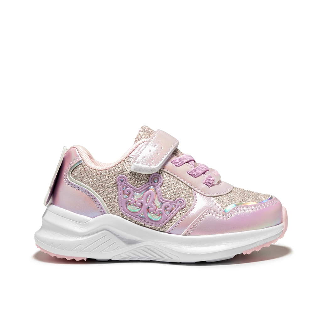 Zapatillas deportivas con luces. Tiene detalles multicolor de corona con purpurina en el lateral y en la parte trasera una mariposa. Para complementar los looks más divertidos.