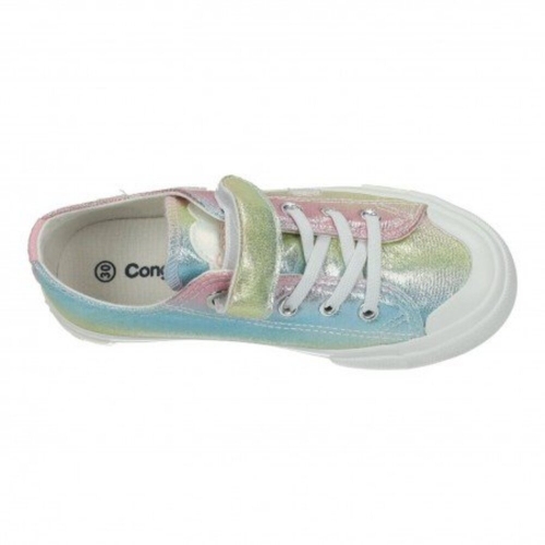 Las zapatillas de CONGUITOS combinan diseño y comodidad en un modelo lleno de encanto. Su acabado brillante en tonos pastel y el estampado de nubes aportan un toque divertido y original, perfecto para los más pequeños. Su interior está forrado en textil suave y transpirable mantiene los pies cómodos todo el día. Sistema de doble sujeción con cordones y cinta adhesiva, ideal para mayor sujeción y facilidad al poner y quitar. Proporciona un agarre óptimo y mayor durabilidad, adaptándose al movimiento natural del pie.Perfectas para combinar con cualquier look casual y disfrutar de la máxima comodidad en cada paso.