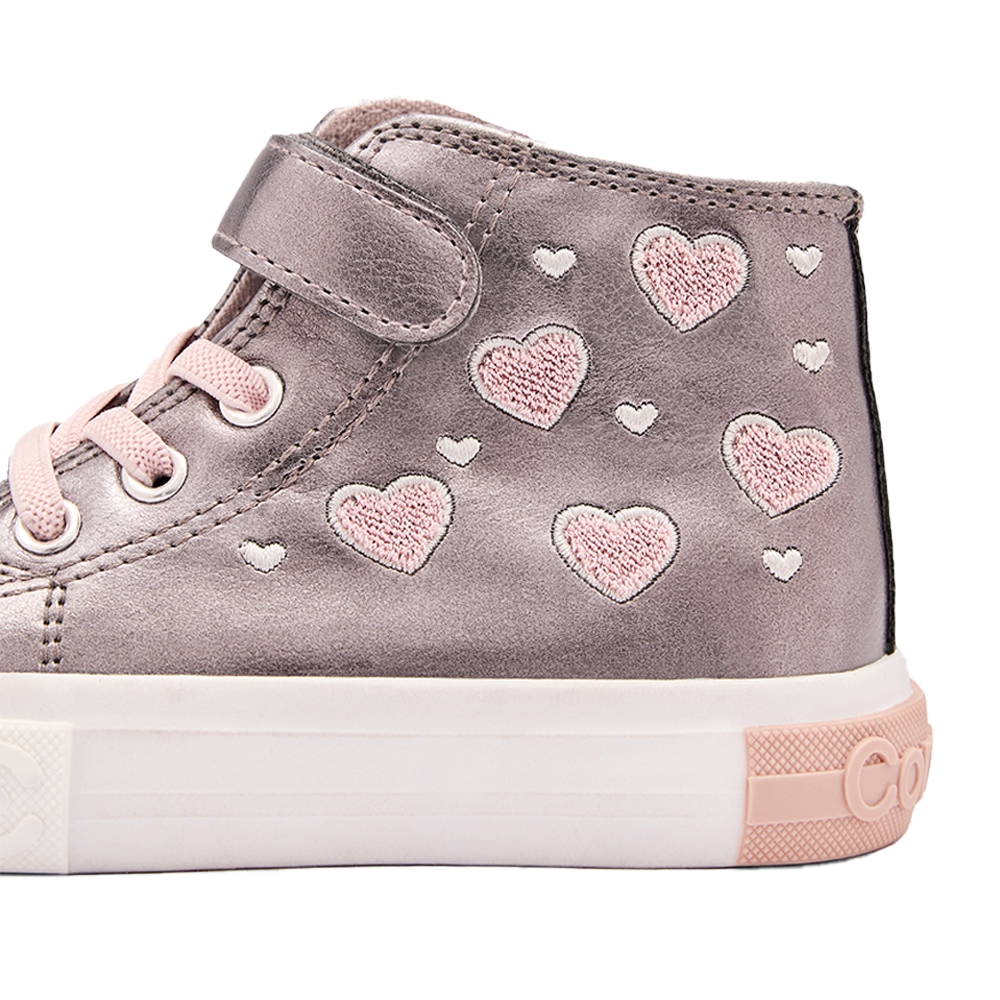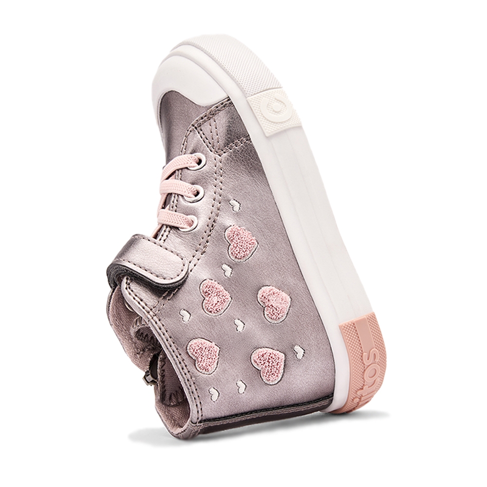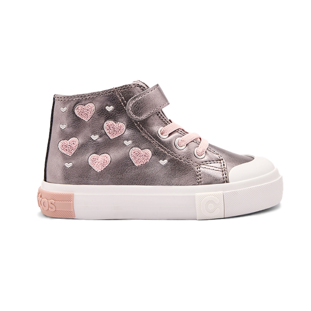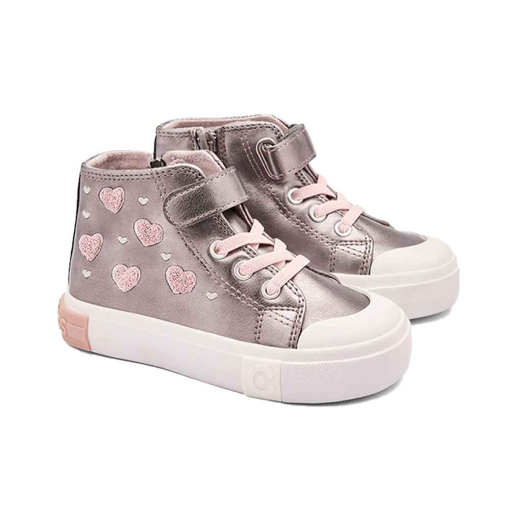 Zapatillas de corte alto con acabado plateado con detalles de corazones.