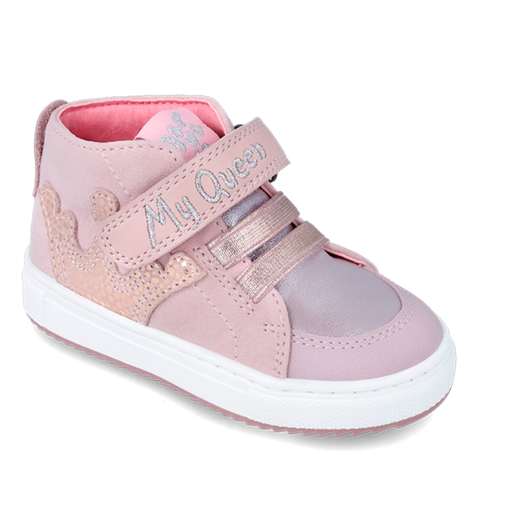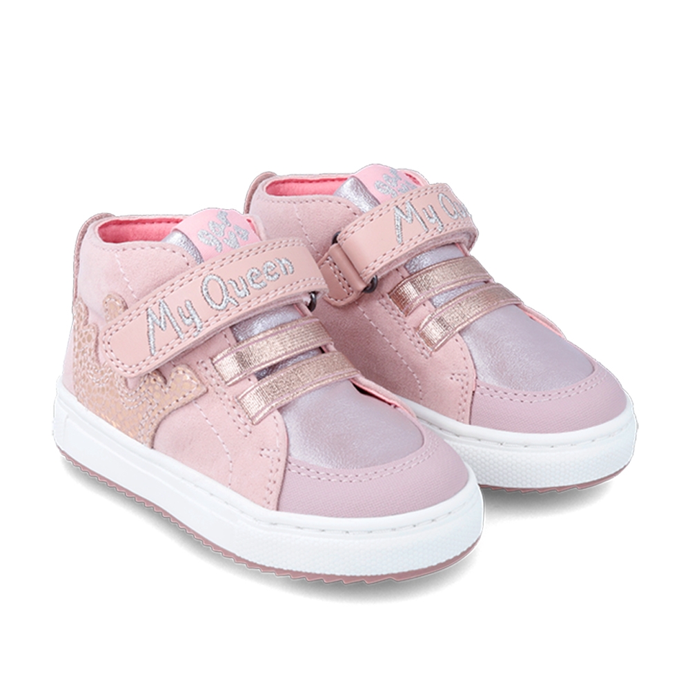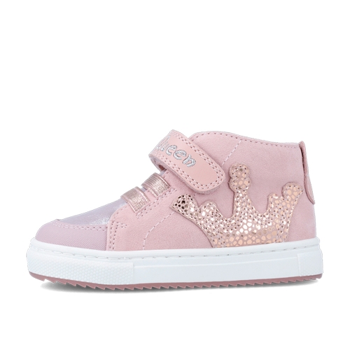 Botita para niña de color rosa con dibujo de corona, con cierre de velcro y elásticos para una mejor sujeción, muy cómodos y calentitos.