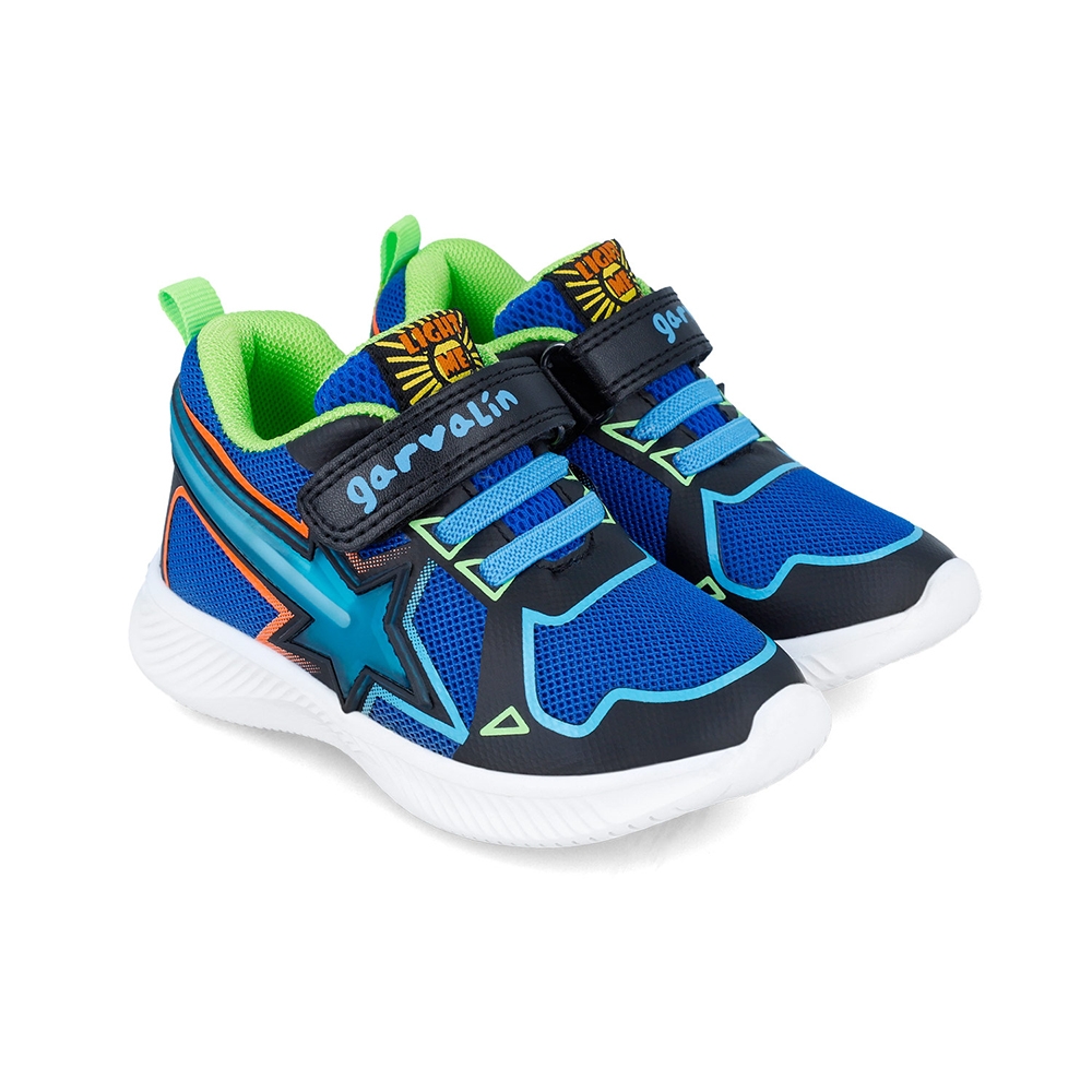 Zapatilla deportiva CON LUCES en color azul, especialmente diseñado para ir cómodos, cierre con velcro y cordón elástico, cómodos, duraderos y flexibles. Incorpora plantilla extraíble anti-bacterias, perfectos para resistir las intensas jornadas de colegio o del parque.