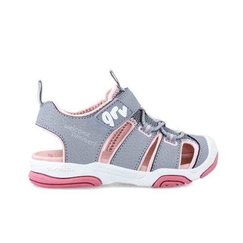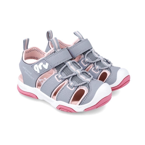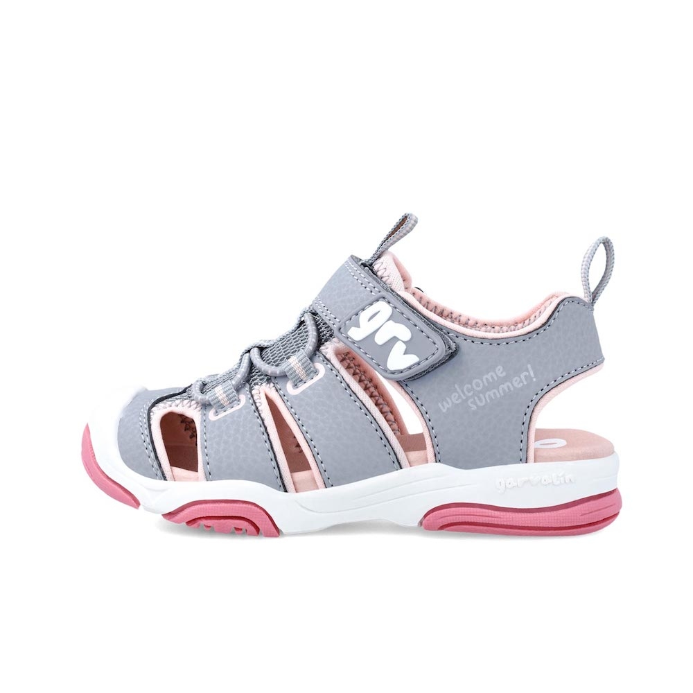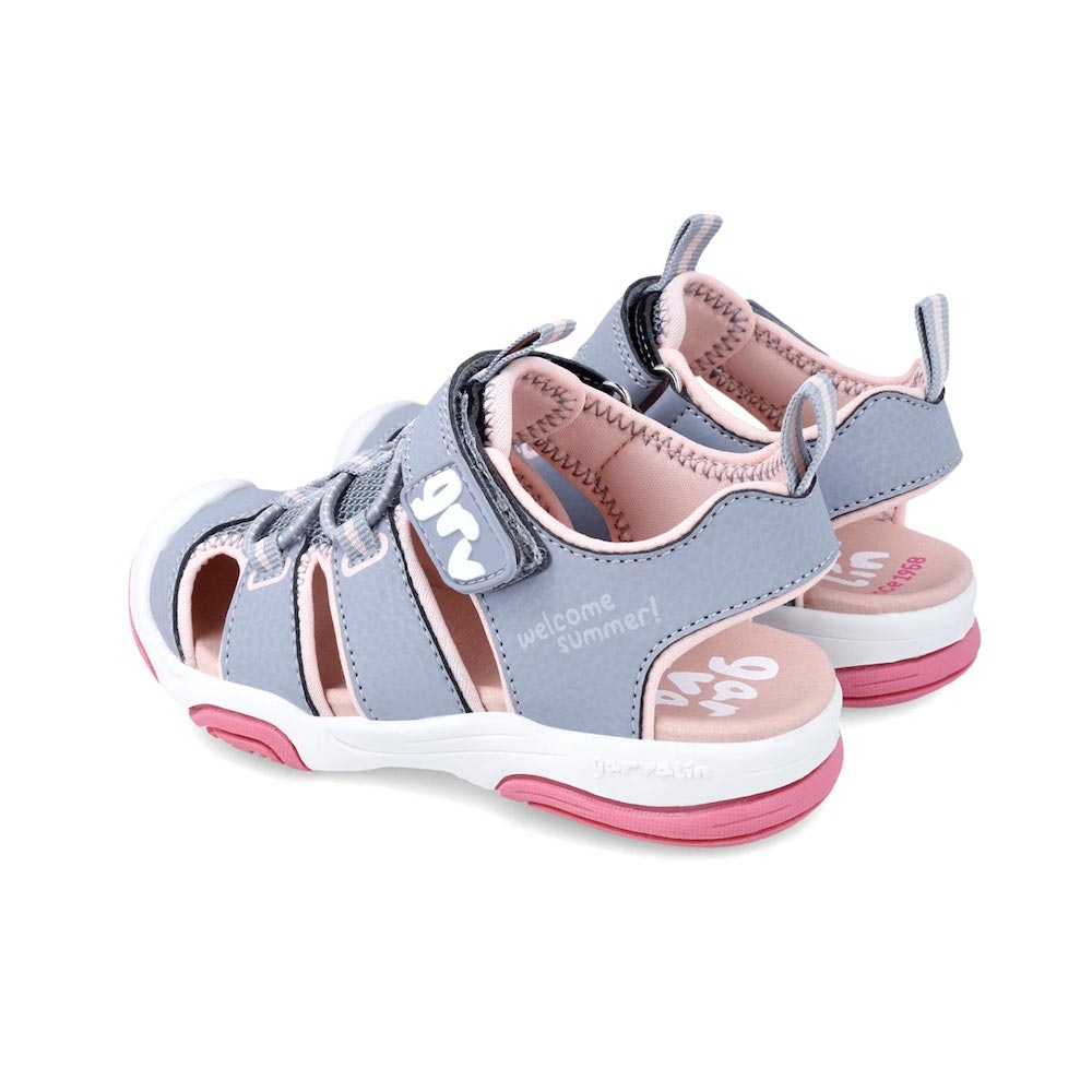 Sandalias cerrada para niña color gris con cierre de velcro, plantilla anti-bacterias y piso de goma muy flexible y velcro en el empeine el cual se abre para una mayor sujeción de el pie, muy combinables para todos los looks de este verano.