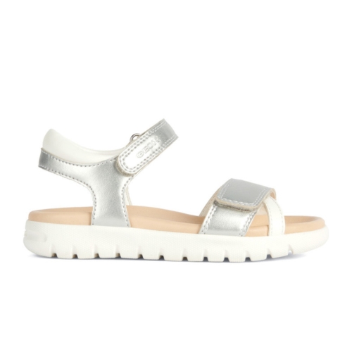 Sandalia para niña de color plata muy combinable, cierre de doble velcro para un mejor ajuste.