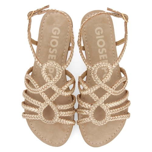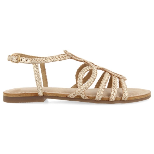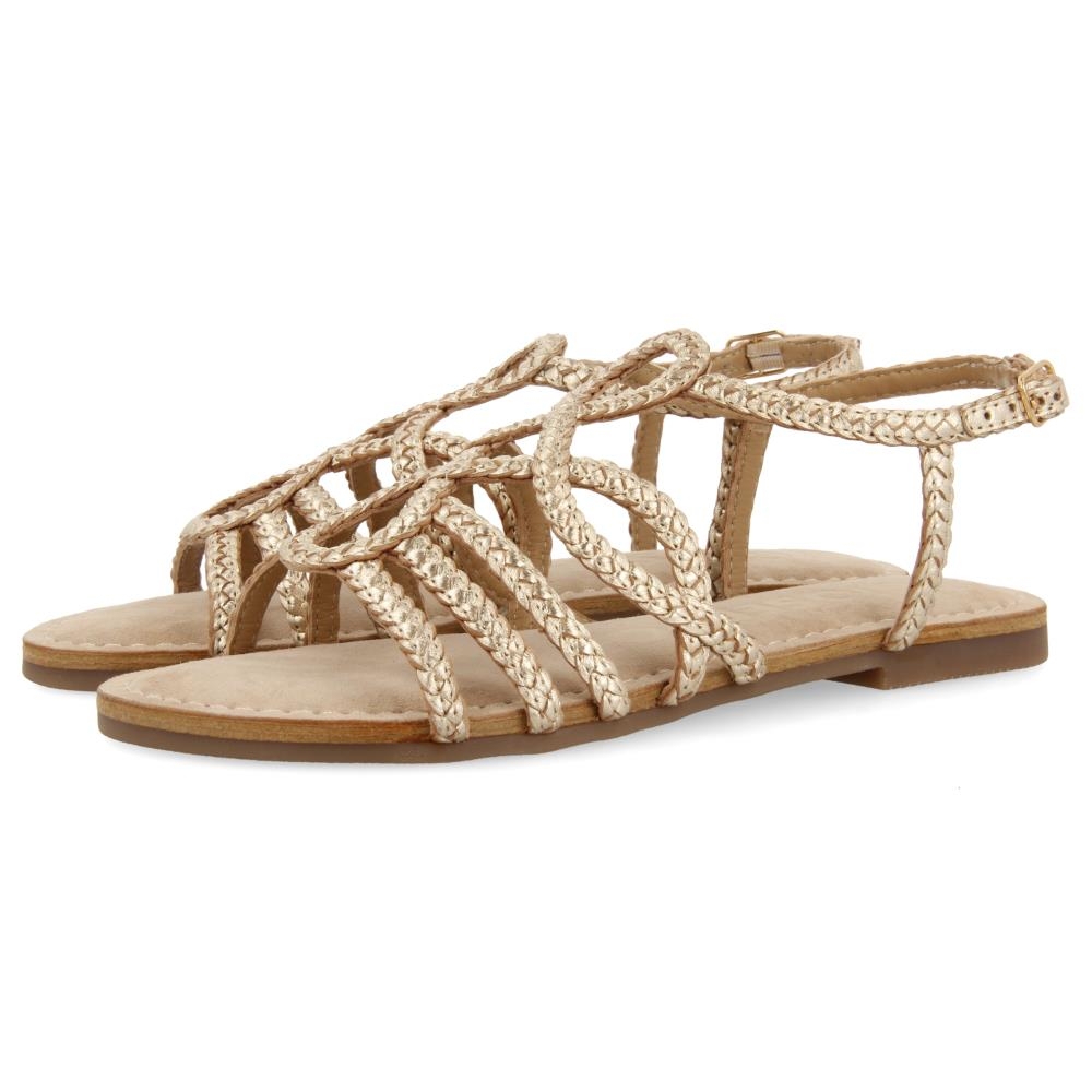 Sandalia para señora y niñas en color oro, con cierre de hebilla para un mejor ajuste.