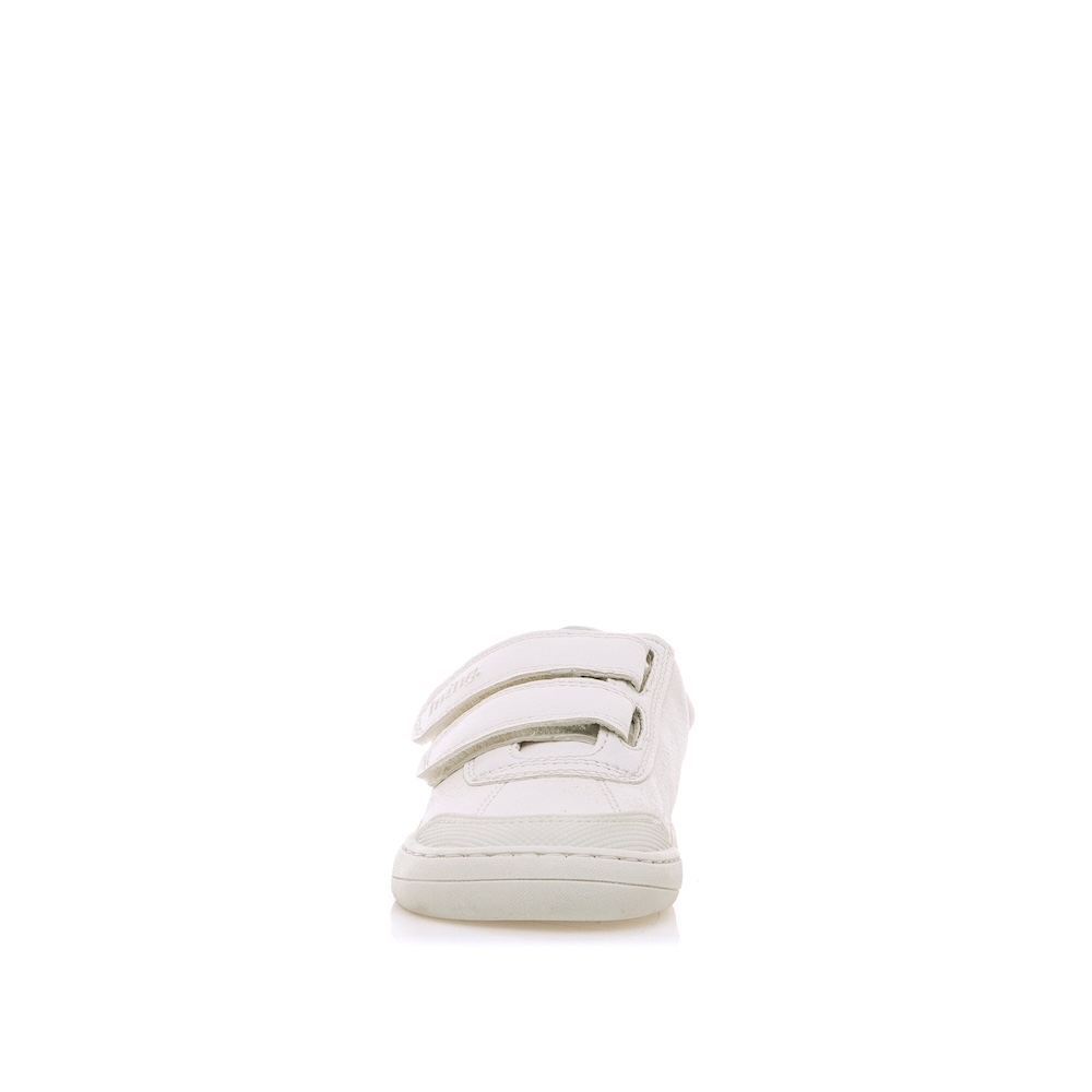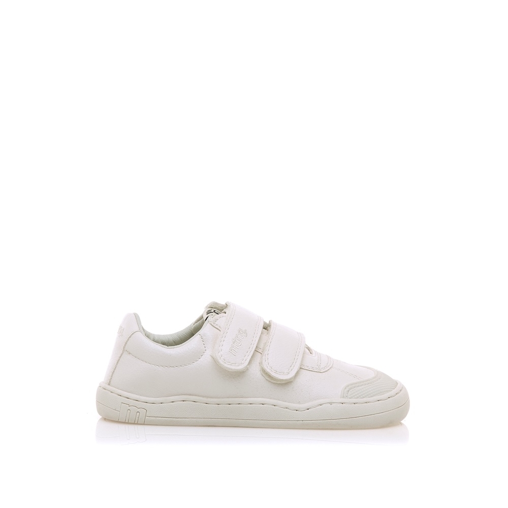 Zapatillas en color blanco para niños y  niñas de la marca Mustang, modelo Free. Este diseño combina funcionalidad y estilo con un práctico doble cierre adherente. Tiene refuerzo en puntera y talón para una mayor resistencia al uso diario.