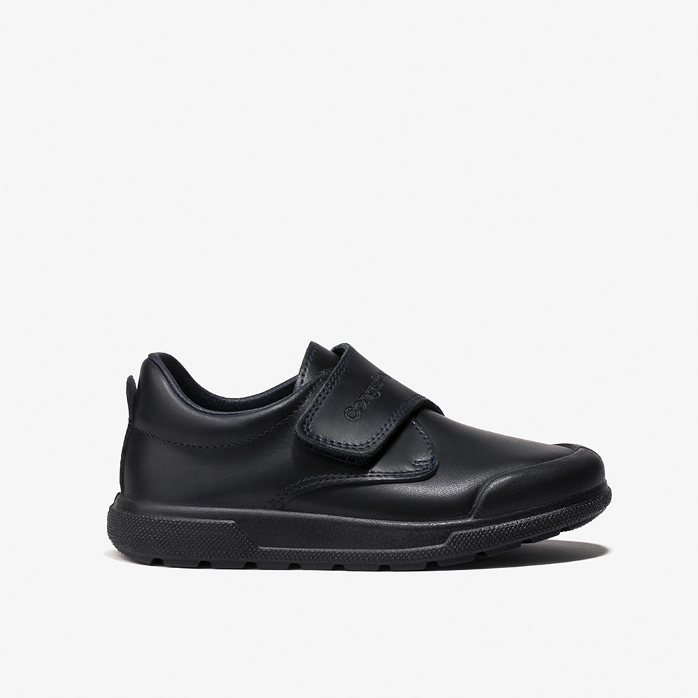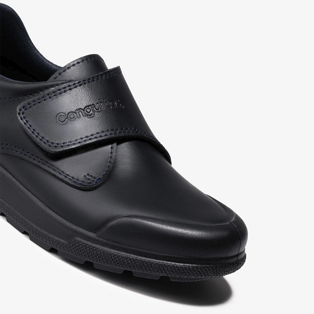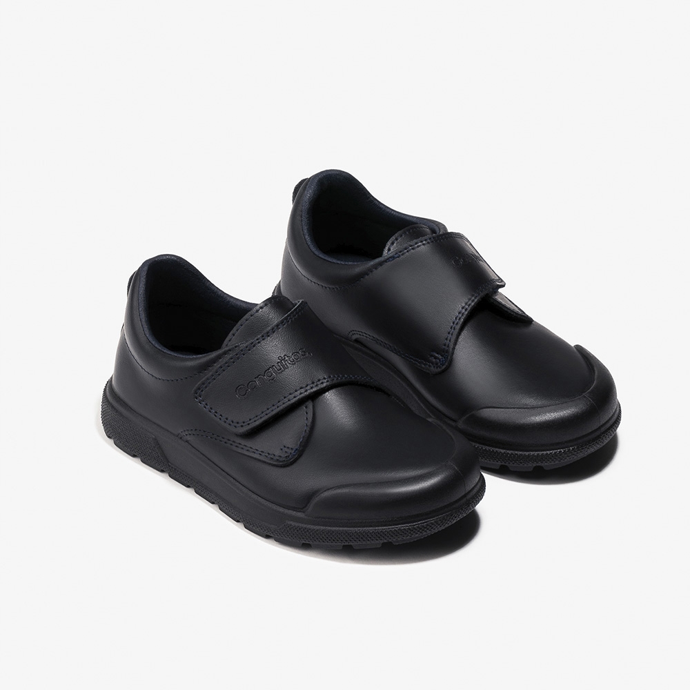 Zapatos colegiales para niños y niñas confeccionados en piel lavable azul marino y plantilla extraíble. Los indestructibles son la mejor elección por su flexibilidad, comodidad y suela ultrarresistente a prueba de carreras, saltos y muchos juegos.