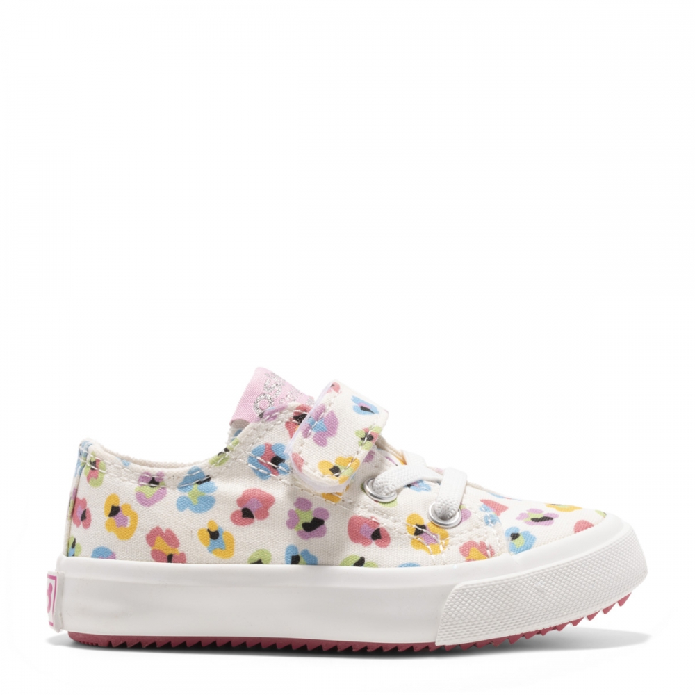 Zapatilla de lona con cierre de velcro, puntera de goma reforzada y piso de goma flexible, antideslizante y resistente al desgarro.