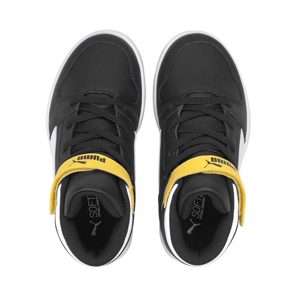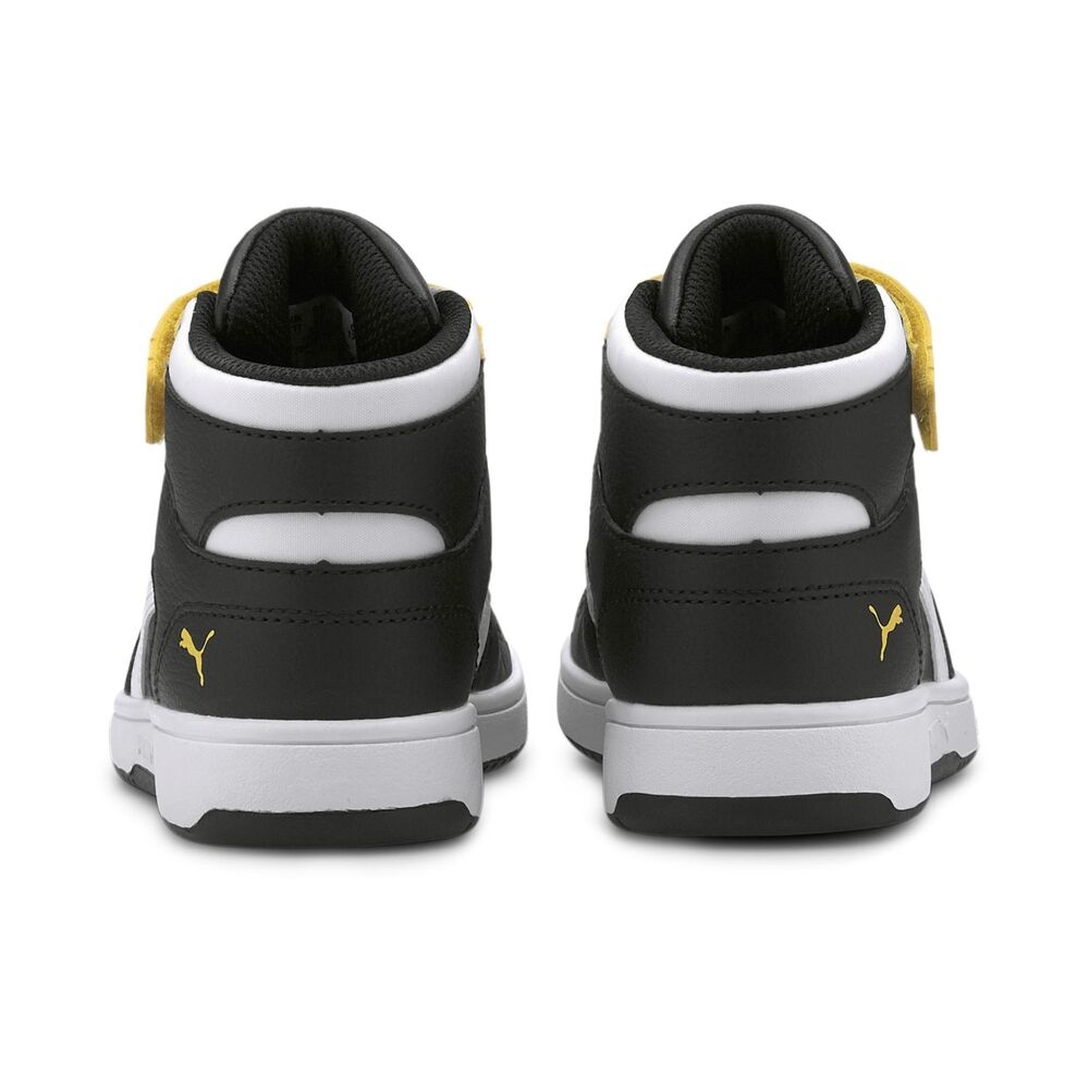 Zapatilla deportiva en bota marca PUMA para niño de color negro, blanco y amarillo, con cierre de cordones y muy cómodas. SON SUPER CHULAS!!